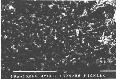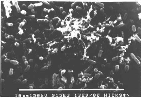 Der Kristall ist von Thiobacillen dicht besiedelt.