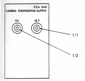 5. INBETRIEBNAHME 5.1. Vorbereitung des Verdampfers Für die Aufdampfung von Kohleschichten kann entweder ein Einfach- oder ein Doppel- Kohlefaden in den Verdampferflansch eingespannt werden.