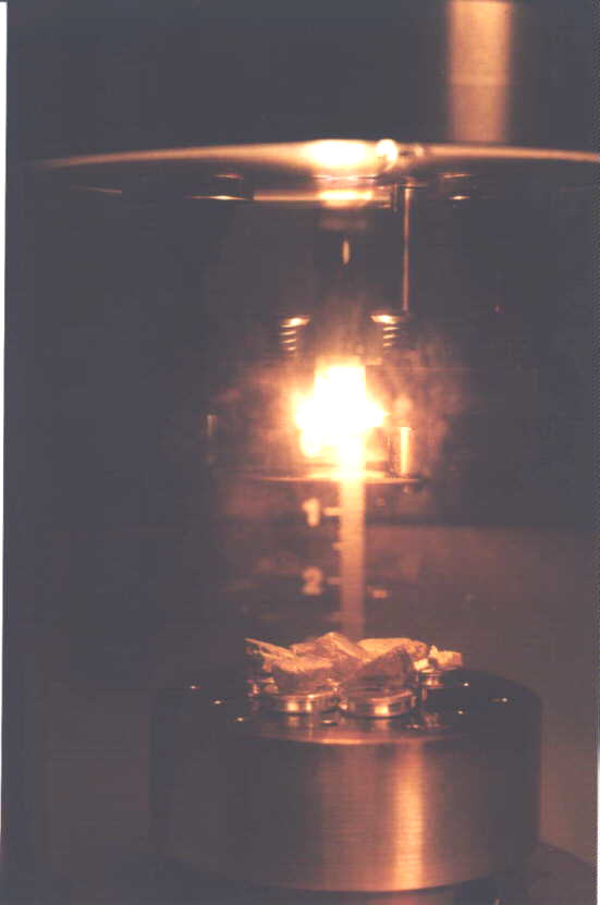 für die Kohleverdampfung ersetzt. Auf dem Objekttisch sieht man die